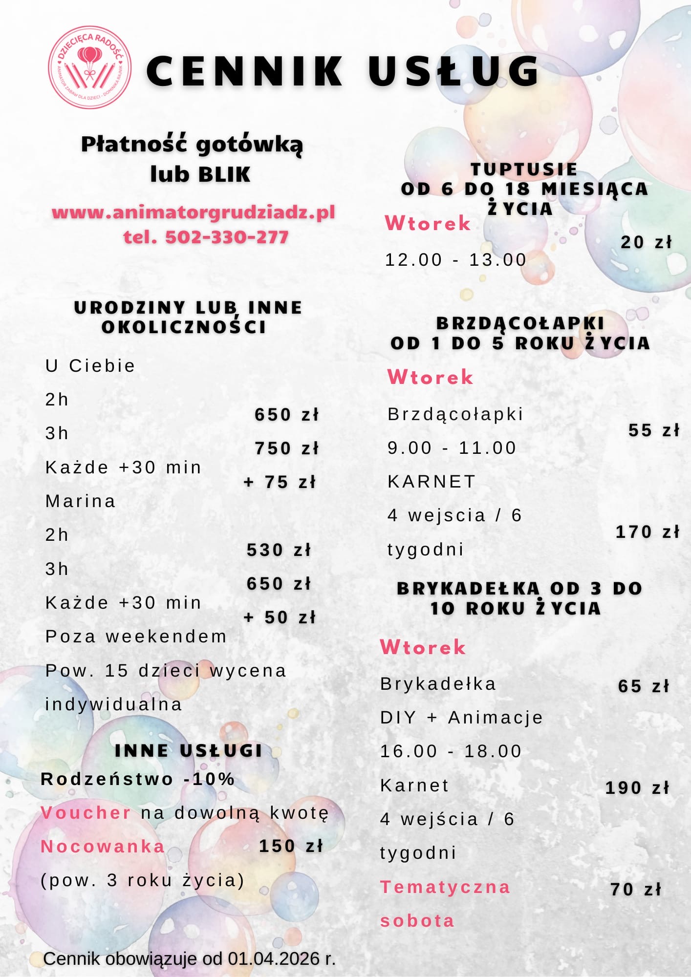 DOSKONAŁA Na podstawie 26 opinii Opublikowano na PatizetxxTrustindex sprawdza, czy pierwotnym źródłem recenzji jest Google. Z całego serca i z całym przekonaniem polecamy urodzinki w Dziecięcej Radości. Pani Dominika- niezwykle ciepła i sympatyczna osoba,ma podejście do dzieci,dopasowuje zabawy do zainteresowań i potrzeb maluchów. Dzieci świetnie sie bawią,rodzice mają czas na chwilę dla siebie. Na pewno jeszcze wrócimy!Opublikowano na Paulina GrzybekTrustindex sprawdza, czy pierwotnym źródłem recenzji jest Google. Baaardzo polecam zajecia Tuptusie dla maluszkow, juz od 6 miesiaca zycia. Moja coreczka zaczyna sie smiac praktycznie od progu, bo animatorka jest przyjazna, usmiechnieta i swietnie podchodzi do dzieci. To spokojna, luzna zabawa przy obecnosci rodzica, dzieki czemu maluchy moga oswoic sie z nowym miejscem i pobawic z rowiesnikami. Na zajeciach sa np. tunele do raczkowania, klocki, zabawy z chusta, instrumenty i rozne kreatywne aktywnosci. Dzis dzieci szalaly nawet w kartonach i skrawkach gazet 🙂 Super atmosfera i fajny pomysl na wspolny czas!Opublikowano na JoannaTrustindex sprawdza, czy pierwotnym źródłem recenzji jest Google. Dziękujemy Pani Dominice za gotowość do pomocy w nagłych, problematycznych sytuacjach. Cieszymy się, że istnieją jeszcze ludzie o tak dużym 🩷 i empatii, polecamy zdecydowanie! 🩷Opublikowano na Izabela HordyńskaTrustindex sprawdza, czy pierwotnym źródłem recenzji jest Google. Świetnie zorganizowane urodziny dla mojej 6latki 🥳 Dzieci bardzo zadowolone, zdecydowanie nie chciały wychodzić, a chciały jeszcze 😉 na pewno tu wrócimy i bardzo polecamy to miejsce.Opublikowano na Karolina MrózTrustindex sprawdza, czy pierwotnym źródłem recenzji jest Google. Cudowna Animatorka! 🥰 Z ogromną pasją podchodzi do zajęć, ma cudowny kontakt z Dziećmi, które bardzo chętnie do Niej wracają. Nocowanki zawsze zostawiają wiele wspomnień ♥️ Zdecydowanie polecam 🙂Opublikowano na Magda SadowskaTrustindex sprawdza, czy pierwotnym źródłem recenzji jest Google. W Dzieciecej Radości organizowalismy 5 urodziny syna. Dzieci wybawione, zabawy zgodne z zainteresowaniami dziecka. Pani Dominika obsereując grupę, reagowała na jej potrzeby. Gościom się podobało, dzisiaj idziemy na kolejną imprezkę w tym miejscu😊Opublikowano na Klaudia FelskeTrustindex sprawdza, czy pierwotnym źródłem recenzji jest Google. Gorąco polecam współpracę z Panią Dominiką. Organizowaliśmy roczek z dużą ilością dzieci w każdym wieku. Pani Dominika świetnie poprowadzia imprezę. Dzieci były zajęte i szczęśliwe. Nawet część dorosłych dołączała do zabaw, nie wyobrażam sobie tej imprezy bez niej. Dzieci mówią, że to były najlepsze urodziny na jakich były. Warto! ❤️Opublikowano na Martyna JodłowskaTrustindex sprawdza, czy pierwotnym źródłem recenzji jest Google. Polecam serdecznie sobotnie zajęcia z Dominiką. Zawsze coś fajnego, kreatywnego,z elementami sensoryki. Duże urozmaicenie warsztatów, dzieciaki zachwycone 👌Opublikowano na Jessica KaliszTrustindex sprawdza, czy pierwotnym źródłem recenzji jest Google. Organizowaliśmy u Pani Dominiki 5-te urodziny córki. Wszystko wyszło świetnie! 😉 Dzieci były bardzo zadowolone i wybawione. Masa ciekawych zabaw, w których dzieci chętnie uczestniczyły. Solenizantka wyszła przeszczęśliwa! 😊 Pani Animator - przesympatyczna osoba z genialnym podejściem do dzieci. Polecam z całego serca. ☺️🌸Opublikowano na Magdalena CzekieńTrustindex sprawdza, czy pierwotnym źródłem recenzji jest Google. Urodzinki w formie przyjęcia z nocowanką- to wyjątkowa przygoda, którą dzieci zapamiętują na długo! Dzieci bawiły się doskonale . Animatorki dołożyły wszelkich starań, aby dzieci czuły się bezpiecznie, swobodnie i po prostu dobrze się bawiły. To zdecydowanie miejsce, do którego chętnie wrócimy!