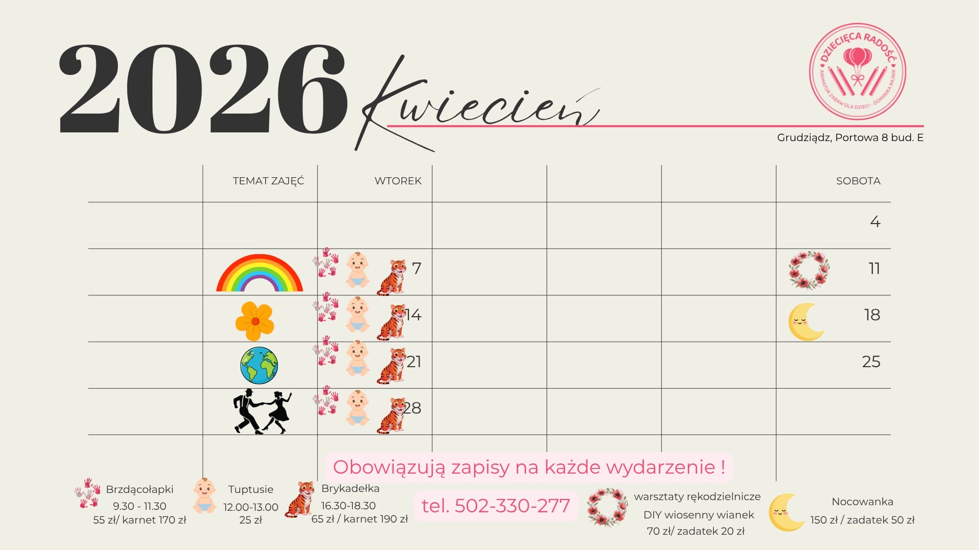 Tematyka zajęć zmienia się co tydzień – każde spotkanie to nowa przygoda! Warsztaty odbywają się w środy i soboty.